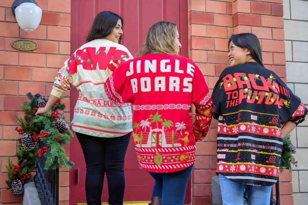 Additionally, an all-new “Holidays at Universal” collection featuring Spirit Jerseys from fan-favorite brands is available. These include designs featuring “The Wizarding World of Harry Potter,” “Hello Kitty” and DreamWorks Animation’s Shrek, plus legendary Universal Pictures films Back to the Future and Jaws, which are celebrating their 40th and 50th anniversaries, respectively. Guests can also purchase select items from the “Holidays at Universal” collection by visiting the all-new online store, shopUniversal.com.